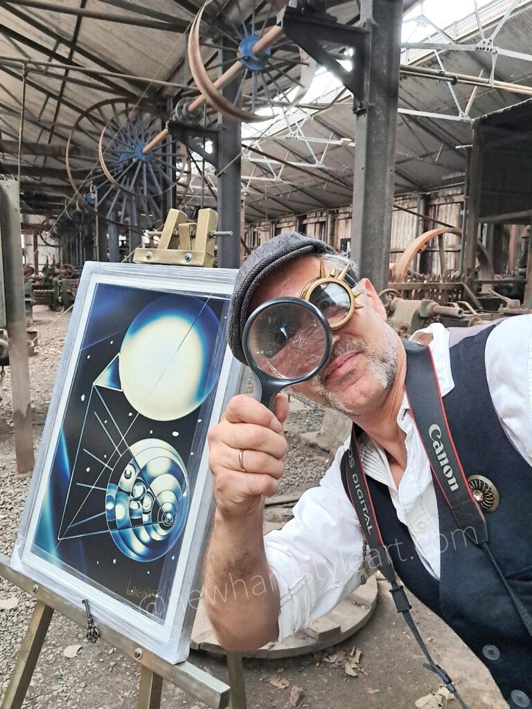 Unsere Steampunk-Staffelei mit unserem Kunstdruck Iris gedruckt auf Hahnemühle Cézanne Canvas 430 g/m², 100% Baumwoll, naturweiß.